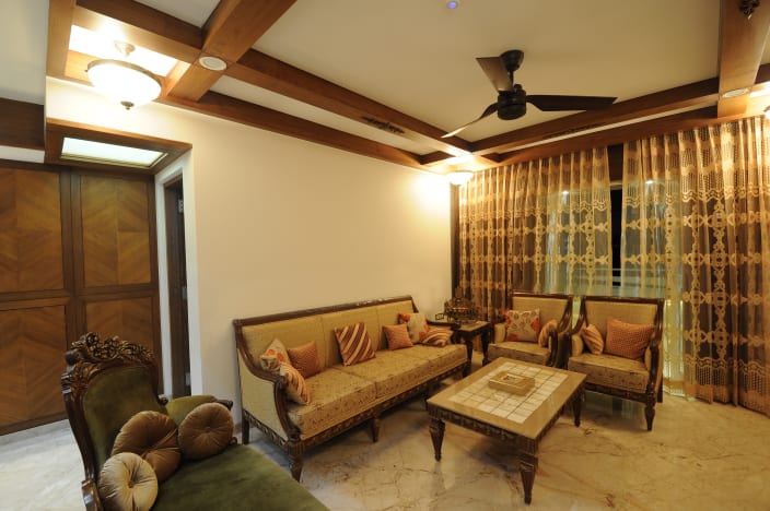 A false ceiling along with a false wall has been created in this area of the living room to give a 3d effect.